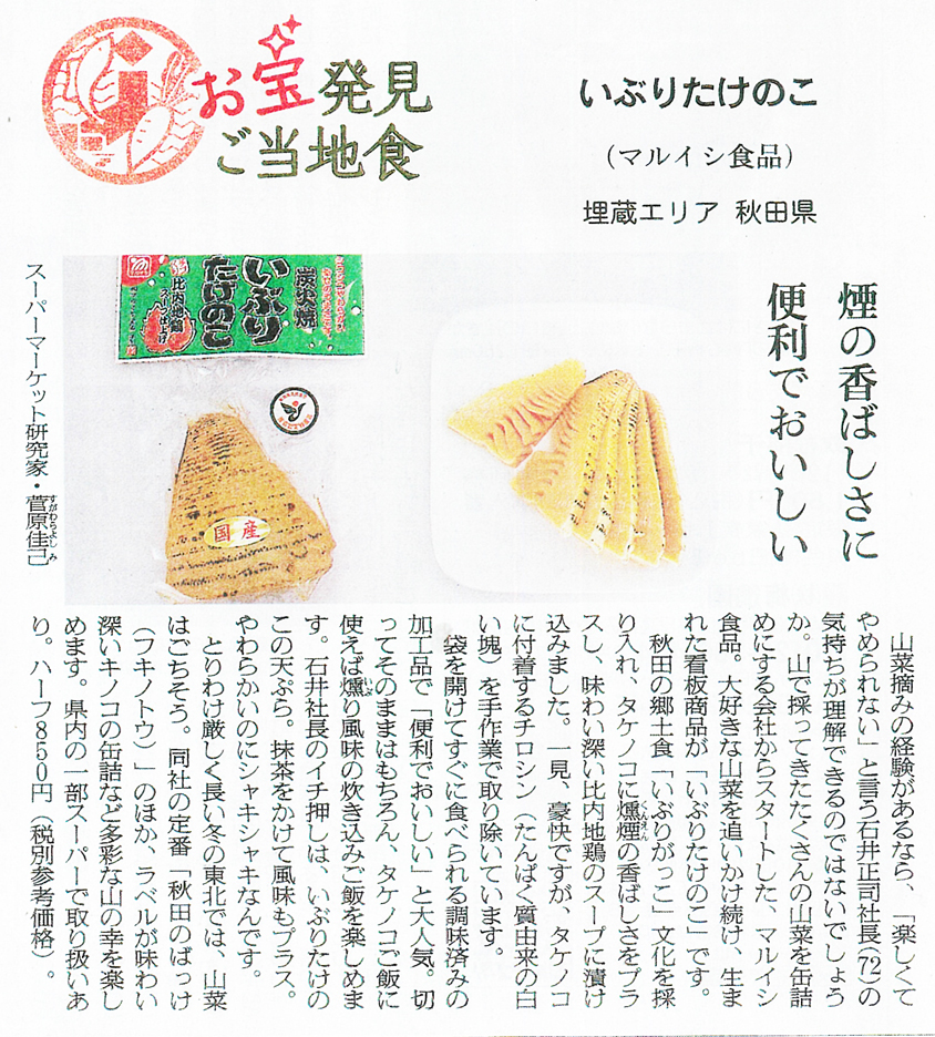 本日、3月20日付の朝日新聞にて、当社の商品「いぶりたけのこ」のご紹介をいただきました。ありがとうございます。